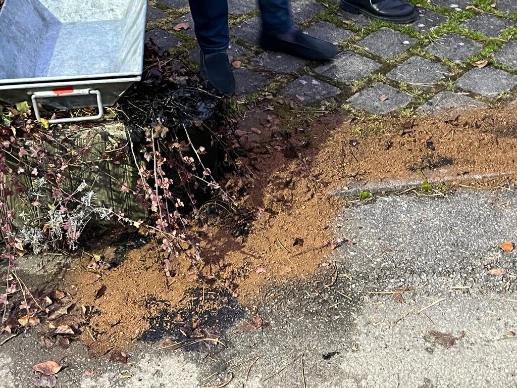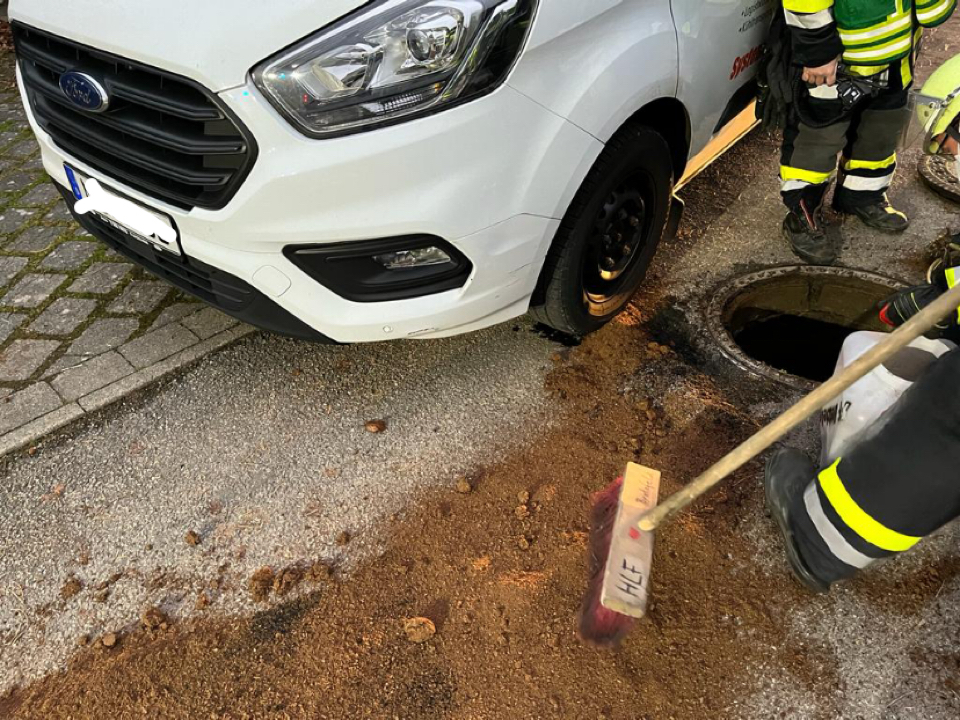 Die Ausgelaufenen Betriebsstoffe wurden mit Ölbinder aufgenommen und die Kanalisation überprüft.