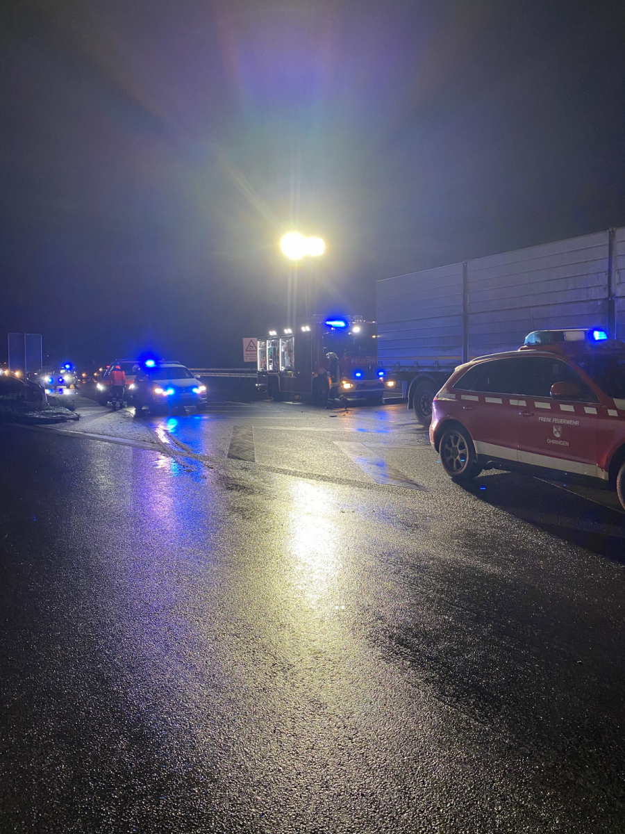 Gemeldet wurde eine eingeklemmte Person in einem PKW die auf einen LKW aufgefahren ist.