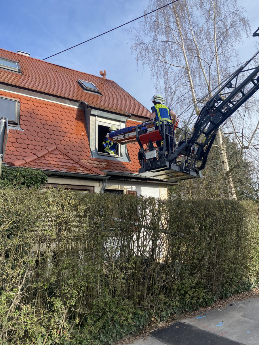 Aufgrund der engen Bebauung des Treppenhauses, wurde die Drehleiter für eine Patientengerechte Rettung nachgefordert.