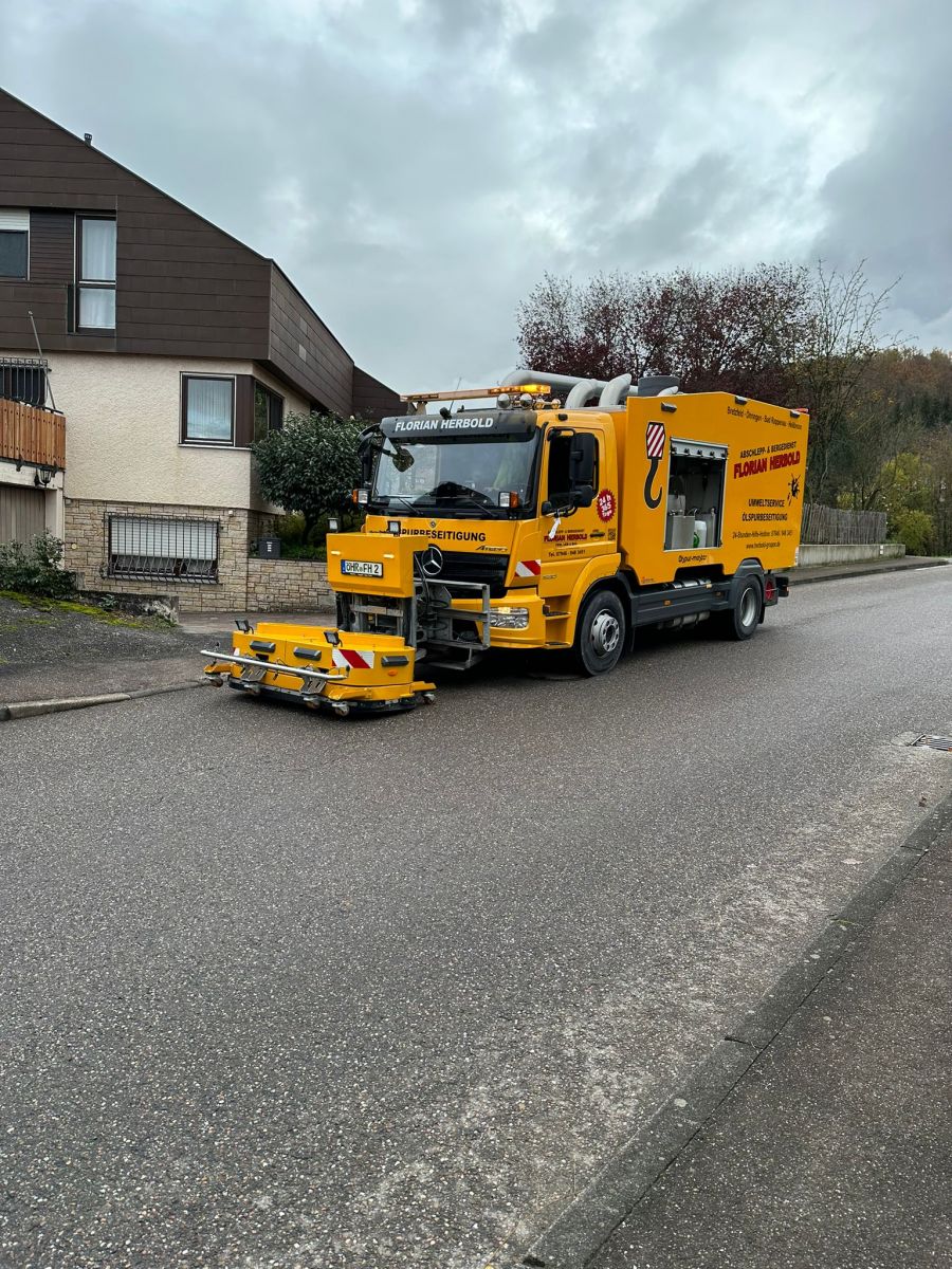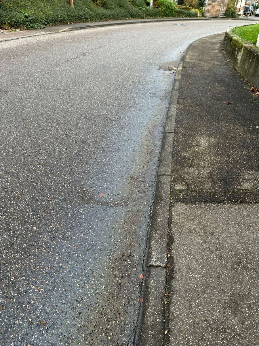 Eine Fachfirma wurde beauftragt, eine Nassreinigung der Fahrbahn durchzuführen.