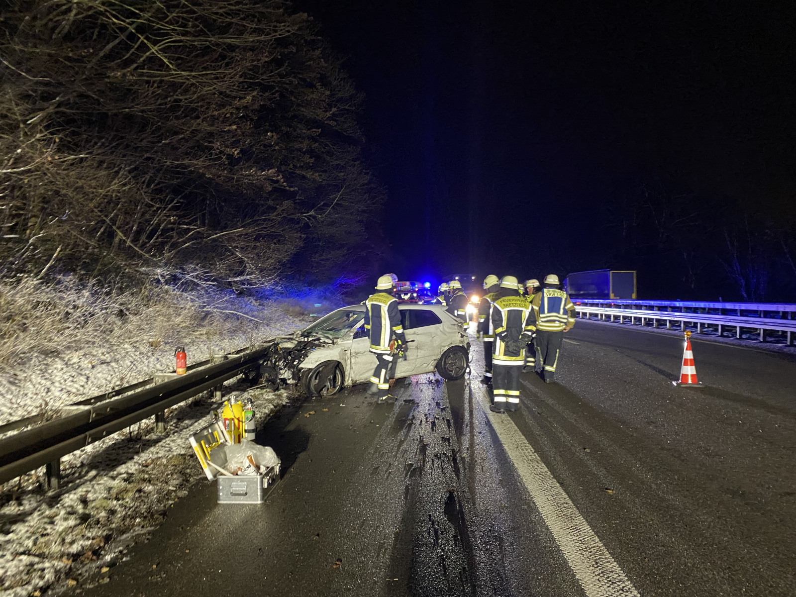 Die Feuerwehr sicherte die Unfallstelle ab und leuchtete die Einsatzstelle aus.