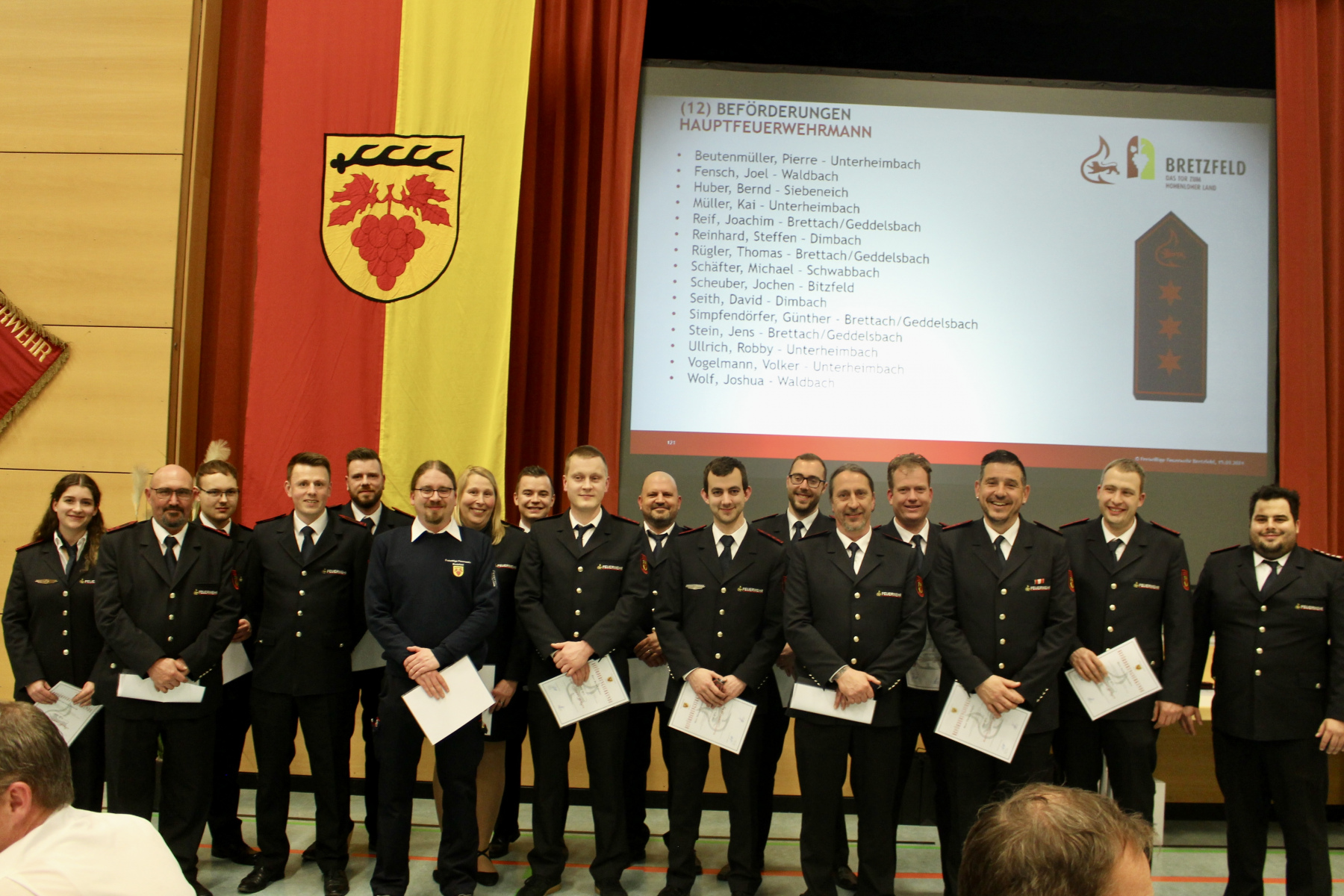 Am Freitag, den 15.03.2024 fand die Jahreshauptversammlung der Feuerwehr Bretzfeld für das Berichtsjahr 2023 in der Mehrzweckhalle Schwabbach statt.